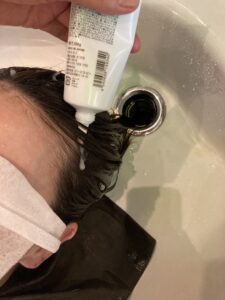 頭皮用ジェルをつけて、マッサージ。
